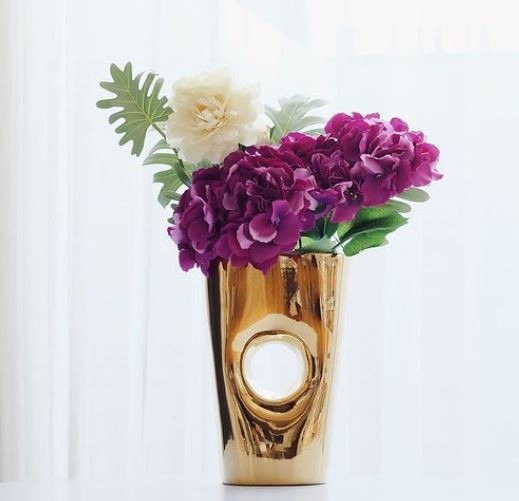Vas bunga dekorasi emas ROSY satu-satunya produksi lokal (Indonesia) di desain khusus bagi anda yang menyukai desain minimalis dan elegant, memberikan sentuhan berkelas dalam ruangan anda. Dapat digunakan sebagai vas bunga maupun sebagai dekorasi ruangan (tanpa diisi bunga dsb) - kualitas terbaik dengan harga minimalis.
