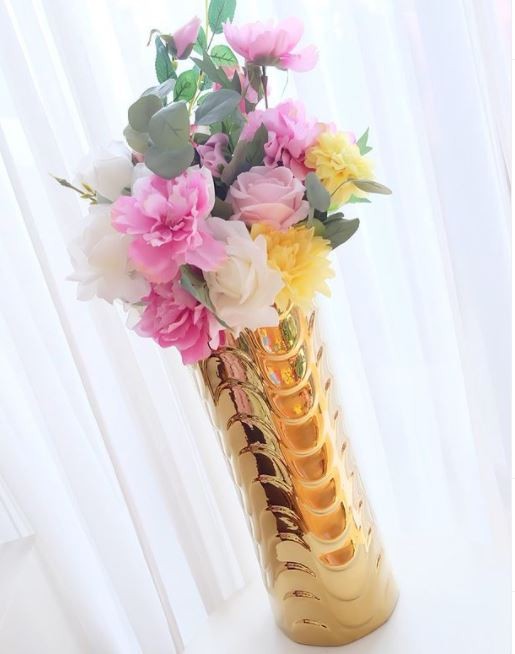 Vas bunga dekorasi emas ROSY satu-satunya produksi lokal (Indonesia) di desain khusus bagi anda yang menyukai desain minimalis dan elegant, memberikan sentuhan berkelas dalam ruangan anda. Dapat digunakan sebagai vas bunga maupun sebagai dekorasi ruangan (tanpa diisi bunga dsb) - kualitas terbaik dengan harga minimalis.