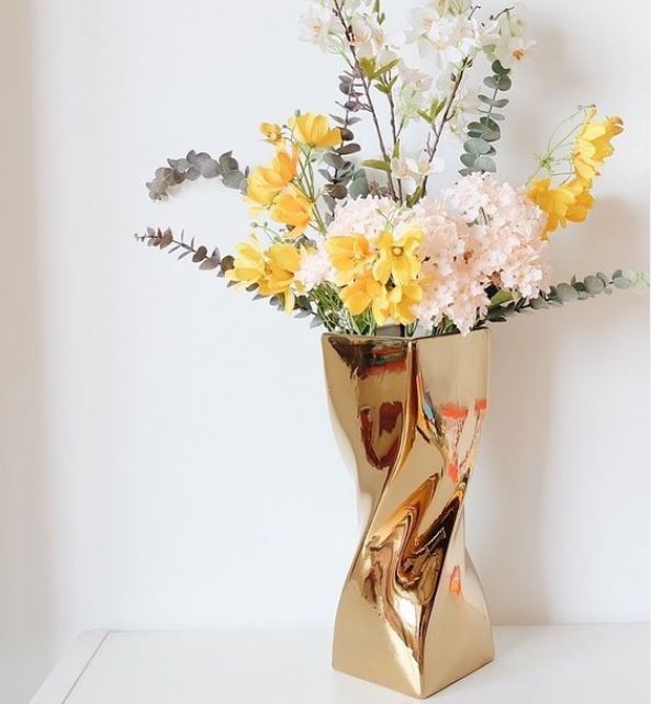 Vas bunga dekorasi emas HOSHE satu-satunya produksi lokal (Indonesia) di desain khusus bagi anda yang menyukai desain minimalis dan elegant, memberikan sentuhan berkelas dalam ruangan anda. Dapat digunakan sebagai vas bunga maupun sebagai dekorasi ruangan (tanpa diisi bunga dsb) - kualitas terbaik dengan harga minimalis.